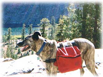 Here Cheyenne is in 2003 at the "Fourth Recess" in the Southern Sierra on a backpacking trip with Doug and our friend, Tim Calkins and Tim's son, Rex (notice prone body behind her).