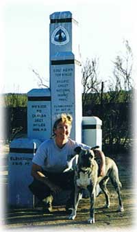 Cheyenne devoured many miles of the Pacific Crest Trail. She ran miles of the PCT from Mexico to Canada! This picture shows the southern terminus, at Campo, California at the Mexican border. I guess by now you figured that Doug took most of these pictures... cuz it's always Me & Chey... but I don't mind! |
